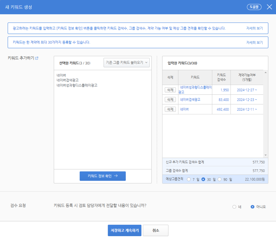 네이버 브랜드검색광고 하는법 (키워드 등록, 계약 기간, 금액, 소재 등록)